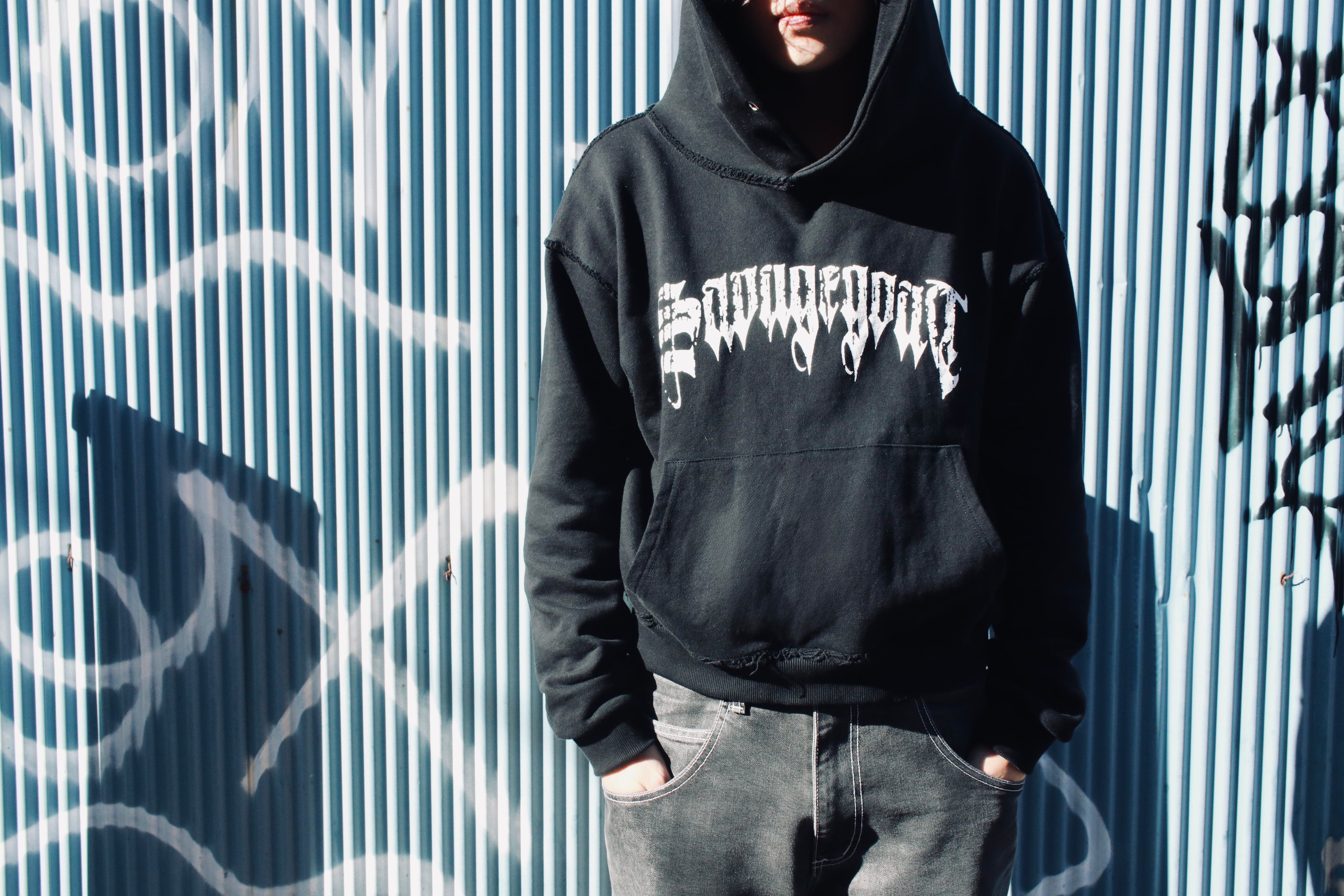cropped damage hoodie